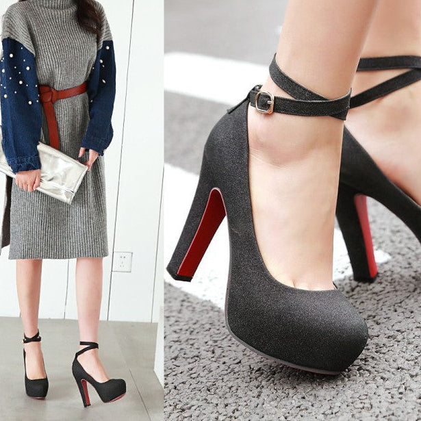 Populaire elementen: ondiepe instap, dikke hak, gesp, waterdicht plateau