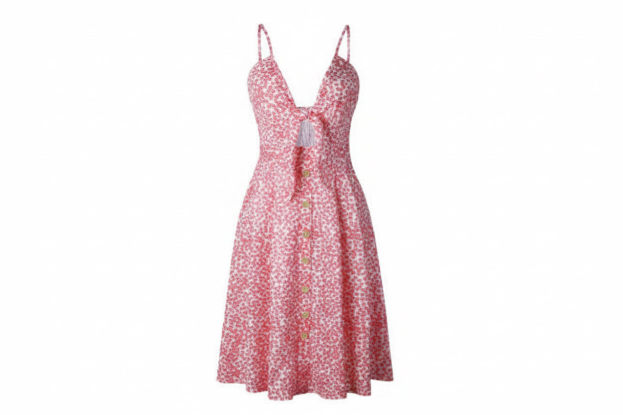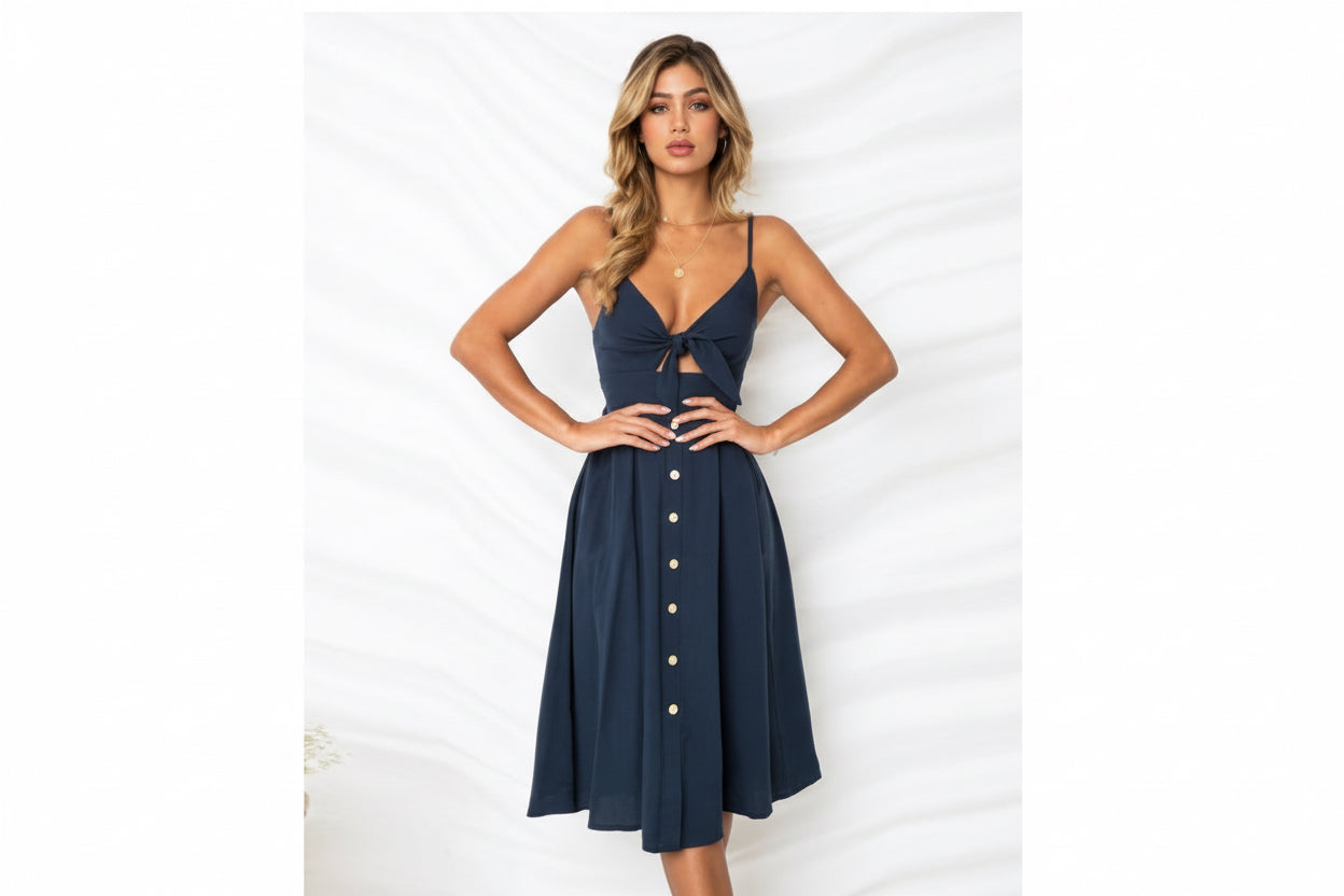 Jurk met knoopsluiting en strik op de rug, sexy bandjes